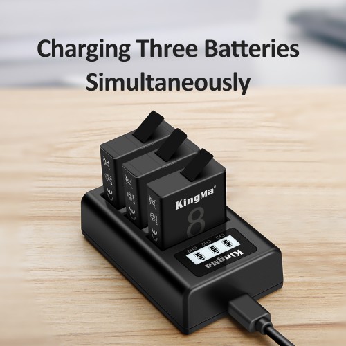 - 1 x Kingma full decoded Lithium Battery (2 pack) With Triple USB LCD Display Charger Kit for Gopro hero 8 7 6 camera